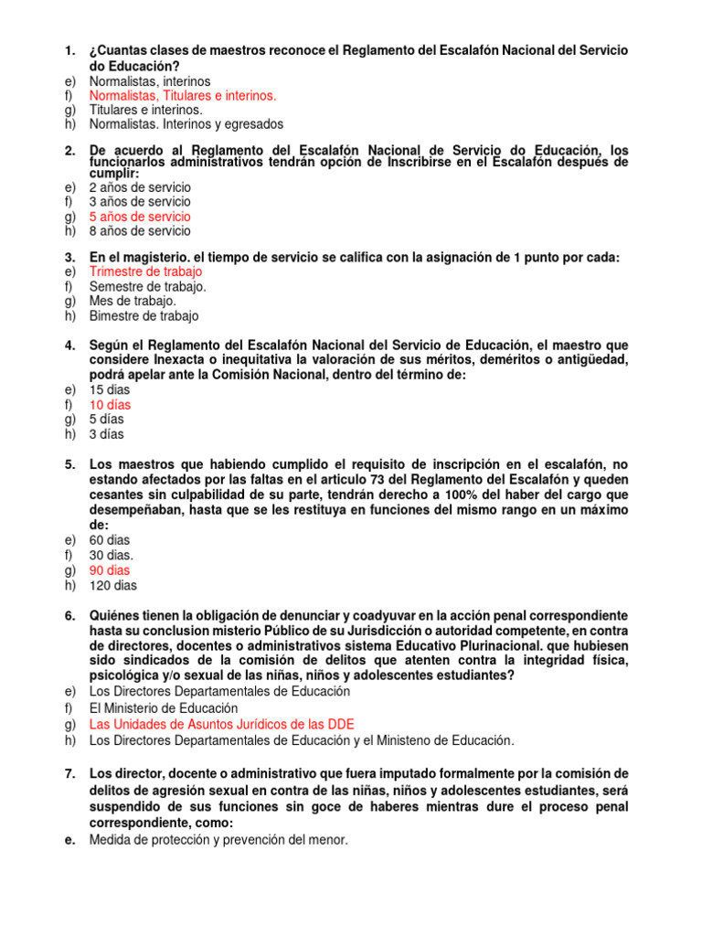2. De acuerdo al Reglamento del Escalafón Nacional de Servicio do Educación, los