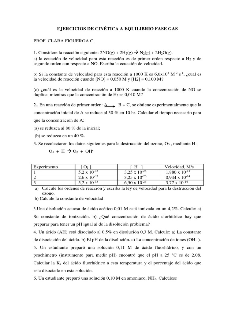 EJERCICIOS DE CINÉTICA A EQUILIBRIO FASE GAS