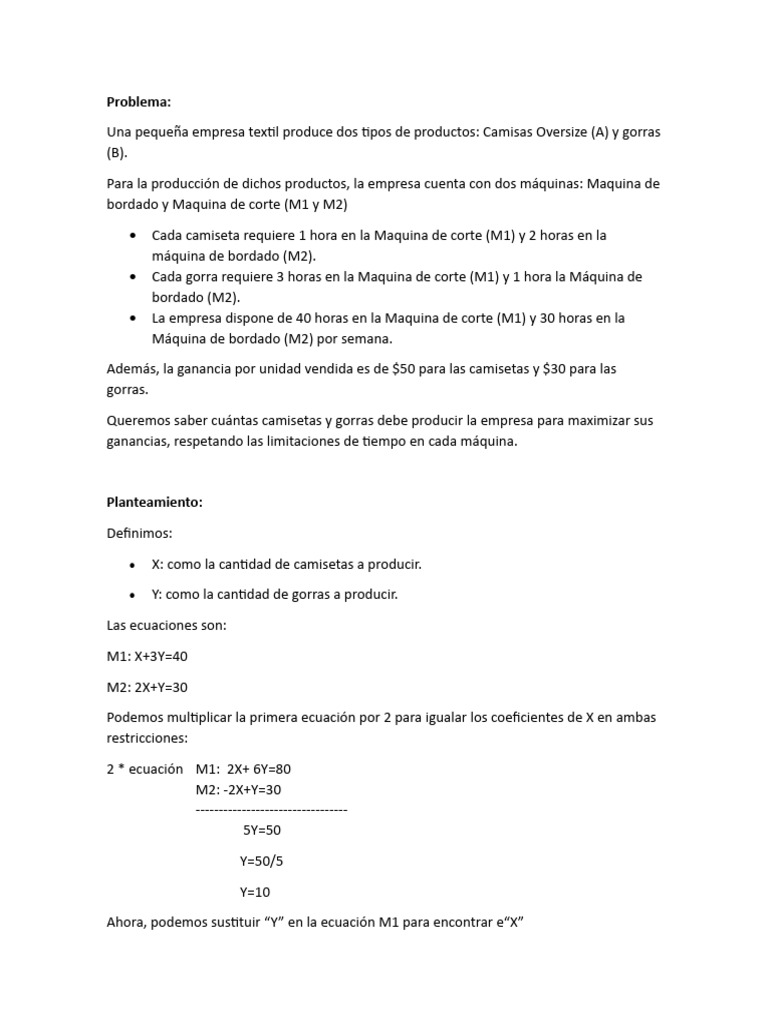 Una pequeña empresa textil produce dos tipos de productos: Camisas Oversize (A) y gorras