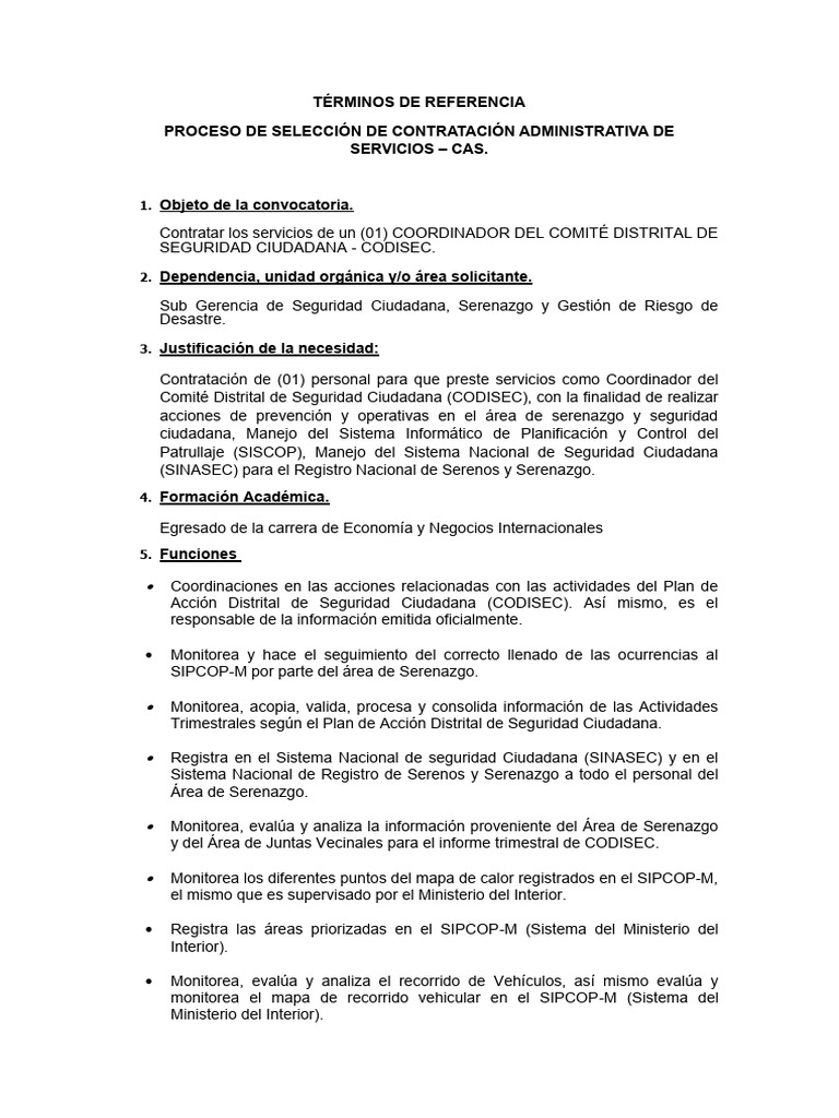 Dependencia jerárquica: Sub Gerencia de Seguridad Ciudadana, Serenazgo y Gestión de Riesgo de Desastre