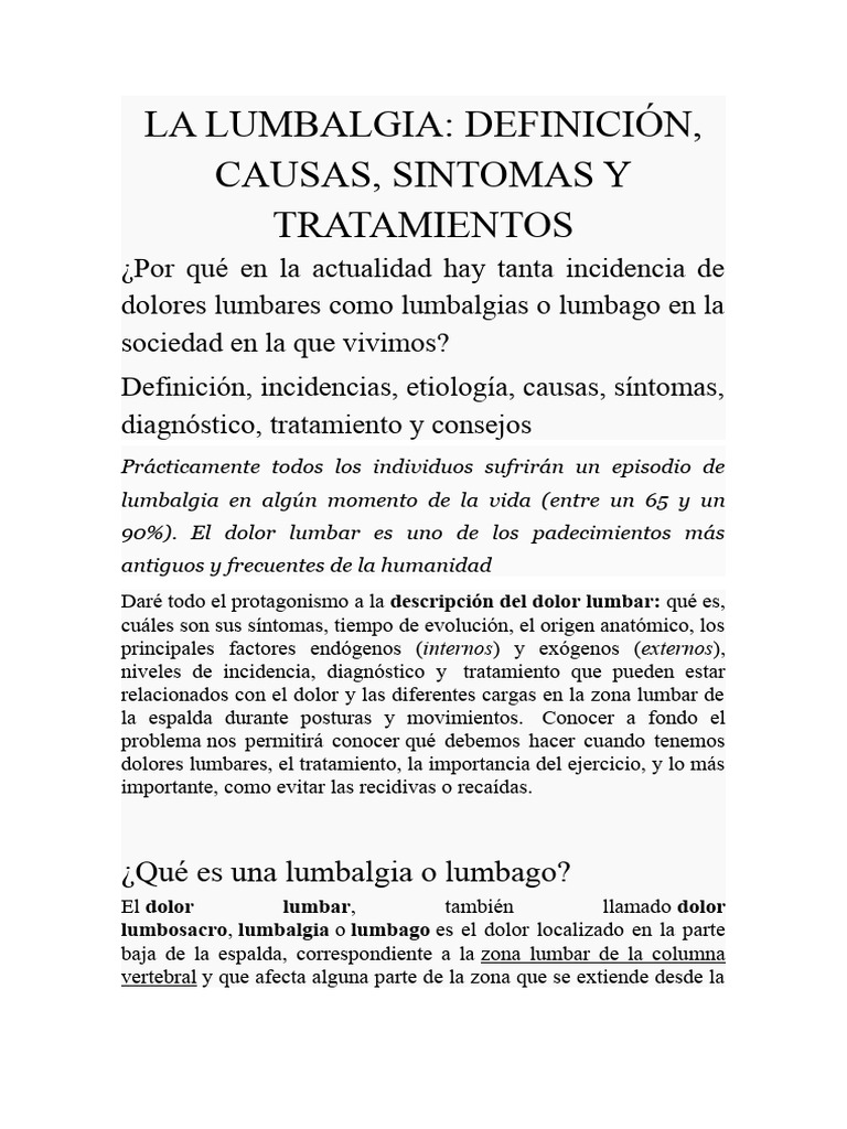 lumbosacro, lumbalgia o lumbago es el dolor localizado en la parte