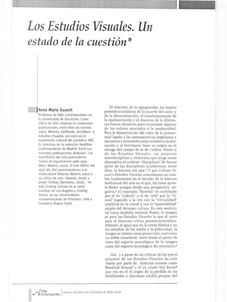 Estudios Visuales. así como en el mía 1 ligado a las me lanarrativas hegelianas y