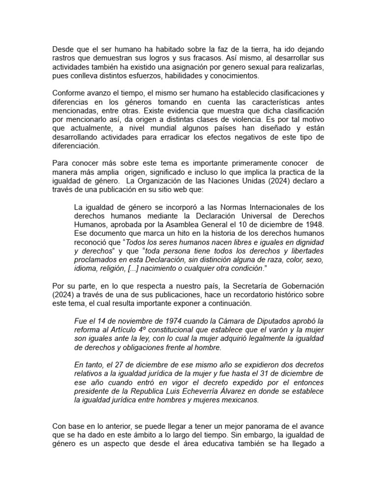 igualdad de género. La Organización de las Naciones Unidas (2024) declaro a
