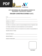 Acta de Entrega y Recepción Del Reglamento de Seguridad y Salud en El Trabajo Risst