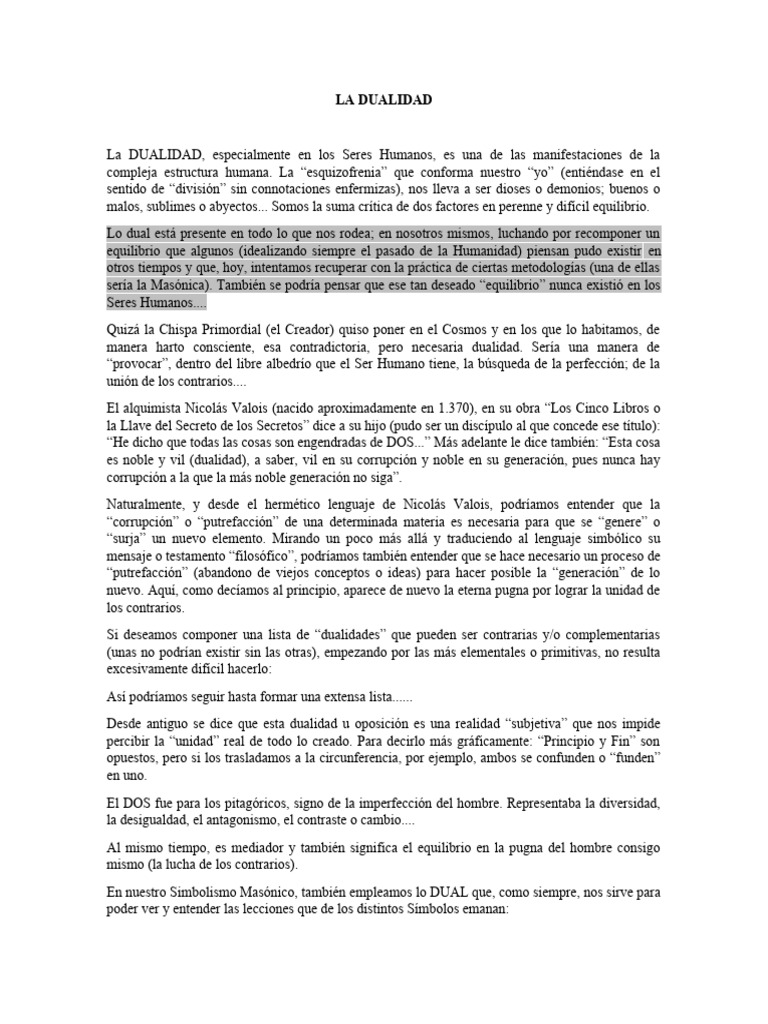 En nuestro Simbolismo Masónico, también empleamos lo DUAL que, como siempre, nos sirve para