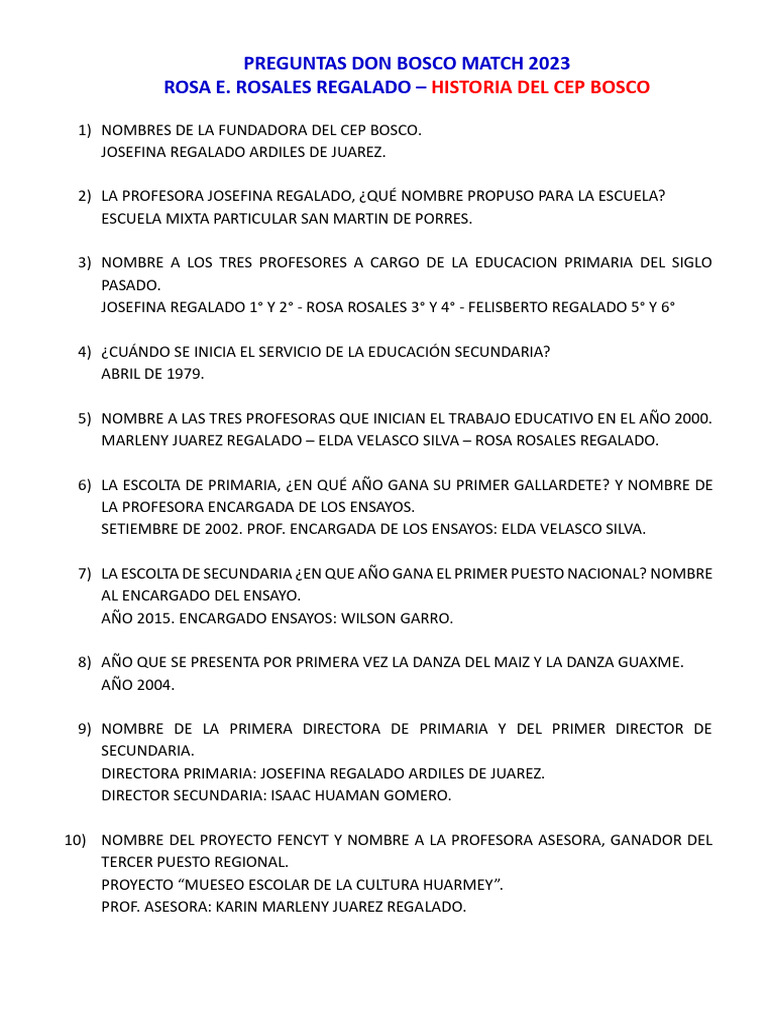 23) ¿QUIÉN DISEÑÓ LA BANDERA DEL CEP BOSCO? ROSA ROSALES R.