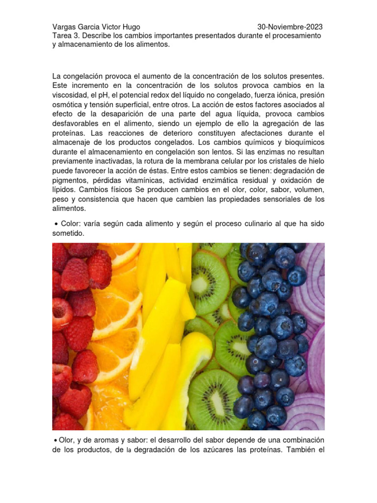 almacenaje de los productos congelados. Los cambios químicos y bioquímicos