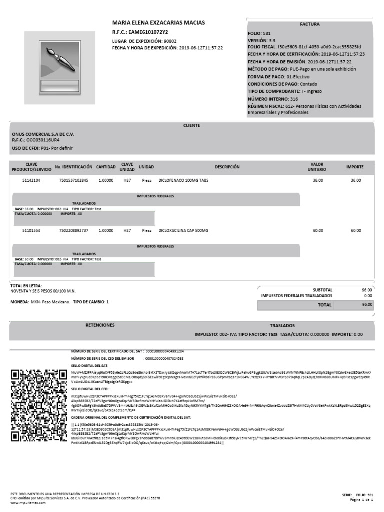 CFDI emitido por MySuite Services S.A. de C.V. Proveedor Autorizado de Certificación (PAC) 55270 Página 1 de 1