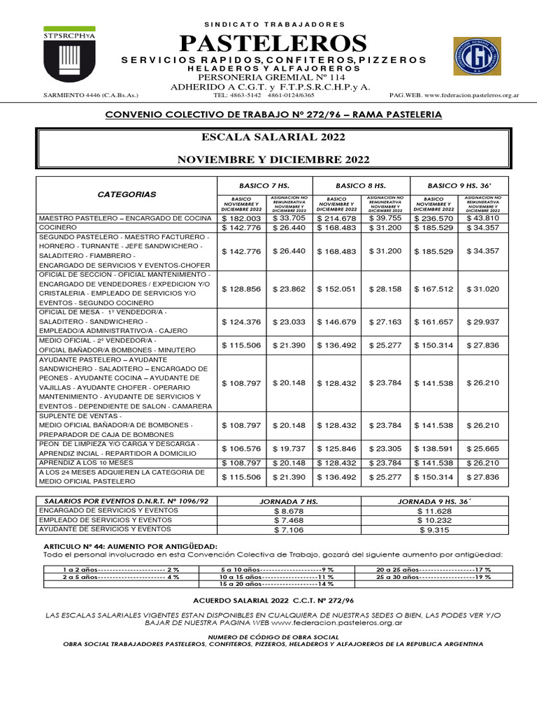 ACUERDO SALARIAL 2022 C.C.T. Nº 272/96