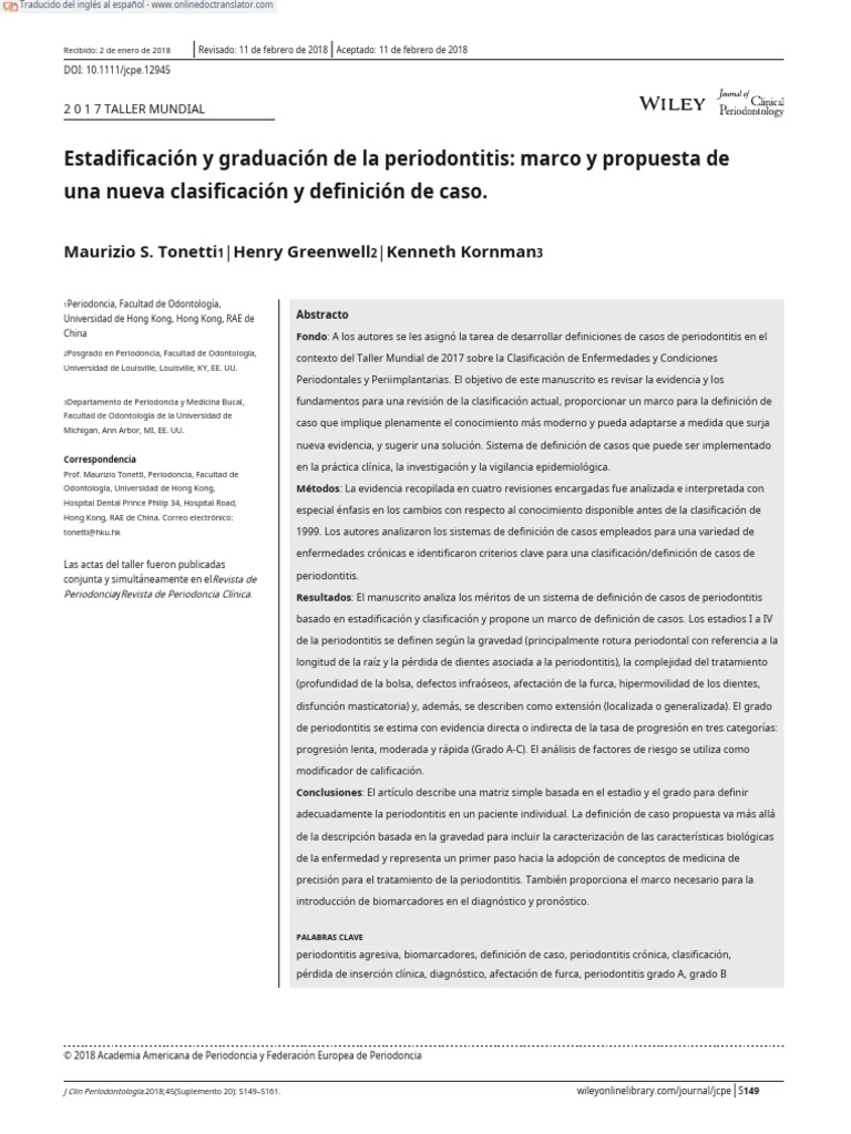 Periodoncia y la Academia Americana de Periodoncia. tonetti Cómo citar este artículo:Tonetti MS, Greenwell H, Kornman KS.
