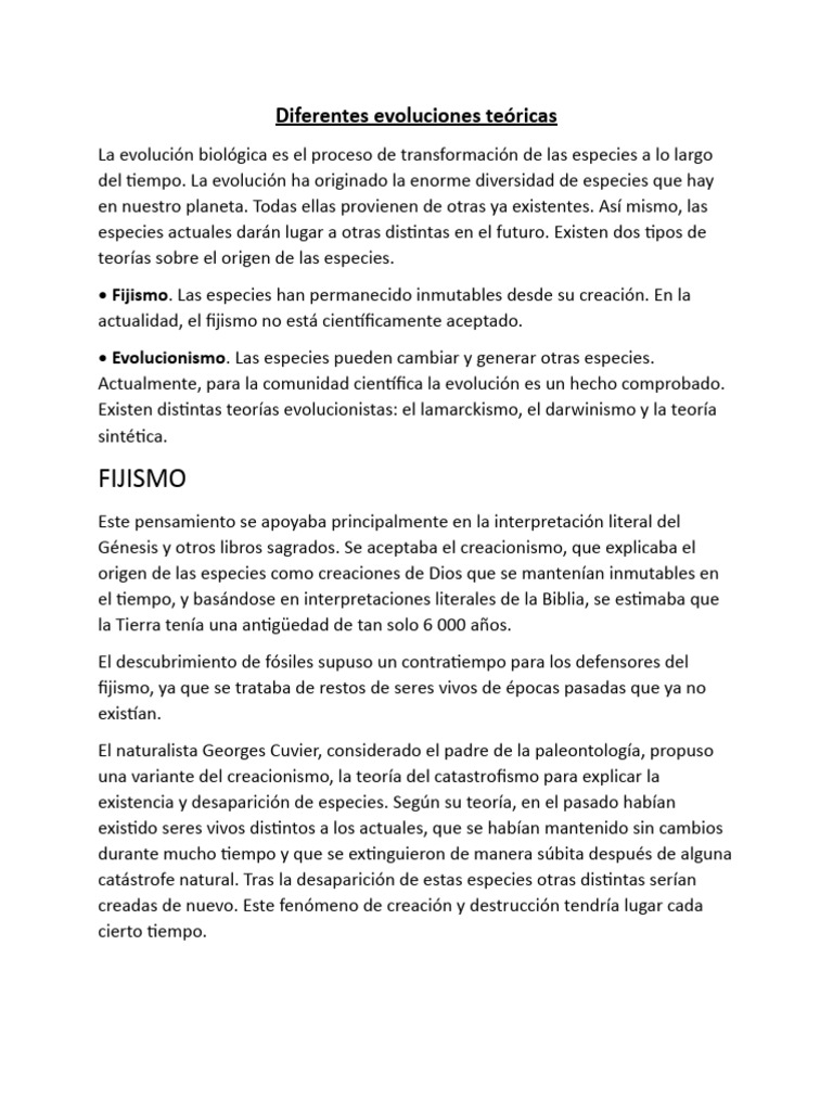 Existen distintas teorías evolucionistas: el lamarckismo, el darwinismo y la teoría