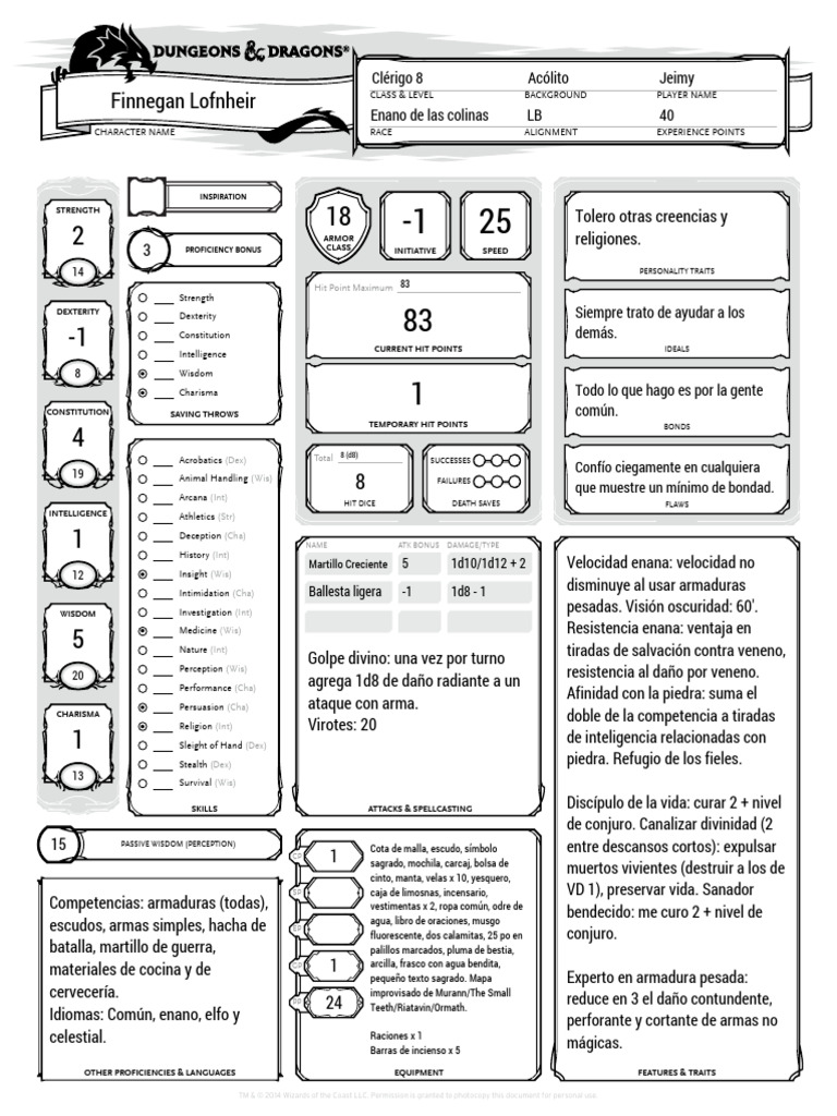 Finnegan Lofnheir CLASS & LEVEL BACKGROUND PLAYER NAME