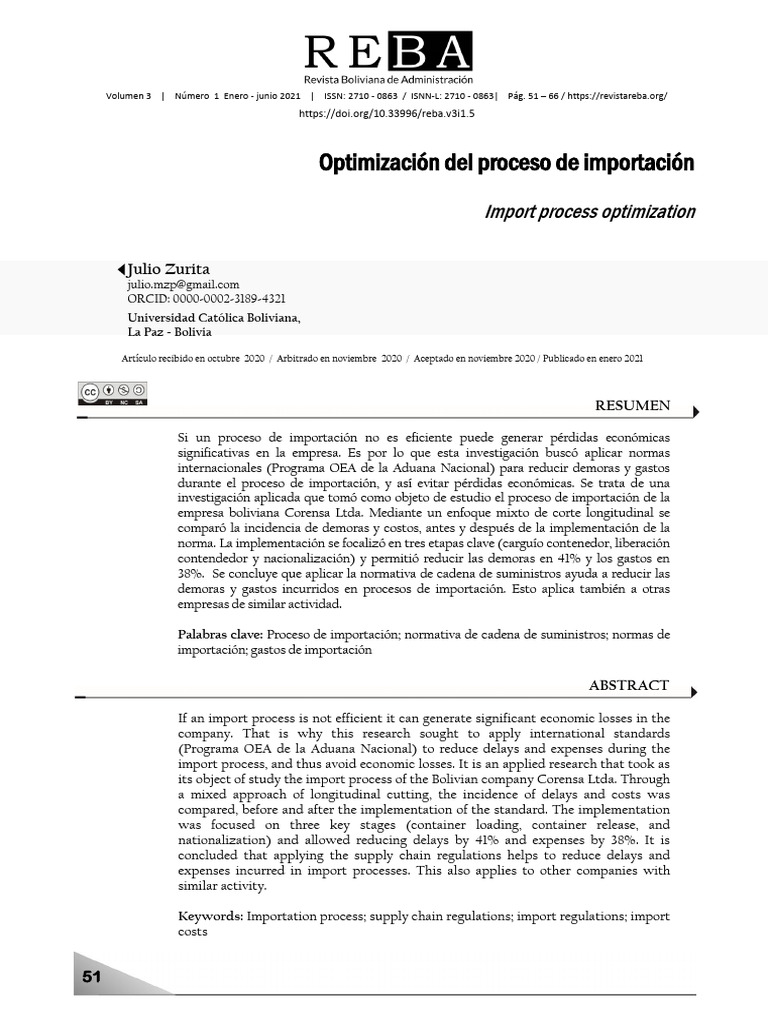 its object of study the import process of the Bolivian company Corensa Ltda. Through