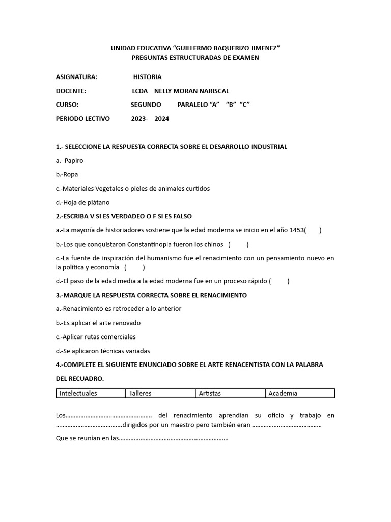 PREGUNTAS ESTRUCTURADAS DE EXAMEN