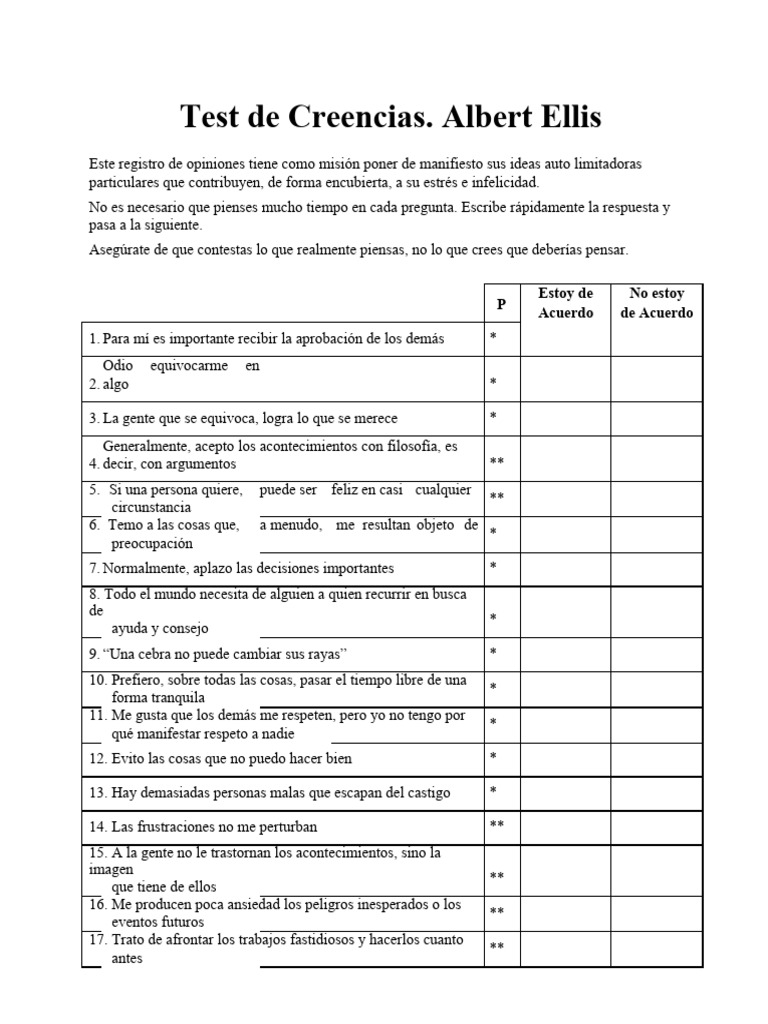 Este registro de opiniones tiene como misión poner de manifiesto sus ideas auto limitadoras