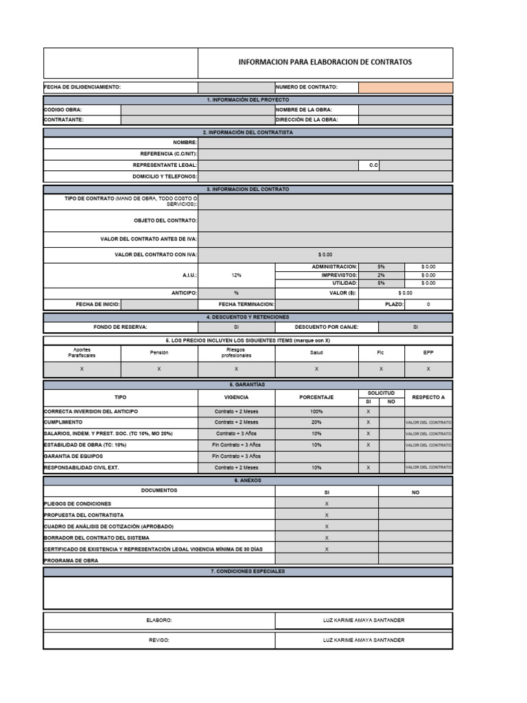 Información para Contratos de Obra