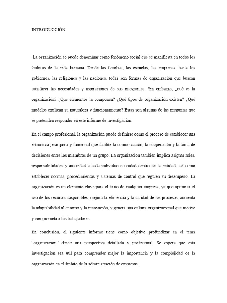“organización” desde una perspectiva detallada y profesional. Se espera que esta