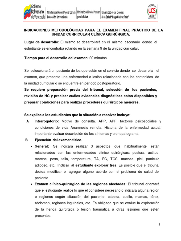 INDICACIONES METODOLÓGICAS PARA EL EXAMEN FINAL PRÁCTICO DE LA