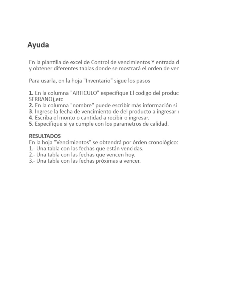 En la plantilla de excel de Control de vencimientos Y entrada de mercancia fecha de
