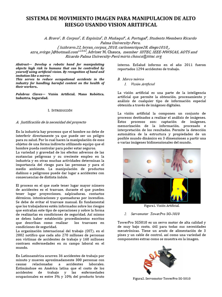 Abstract— Develop a robotic hand for manipulating interno. EsSalud informo en el año 2011 fueron