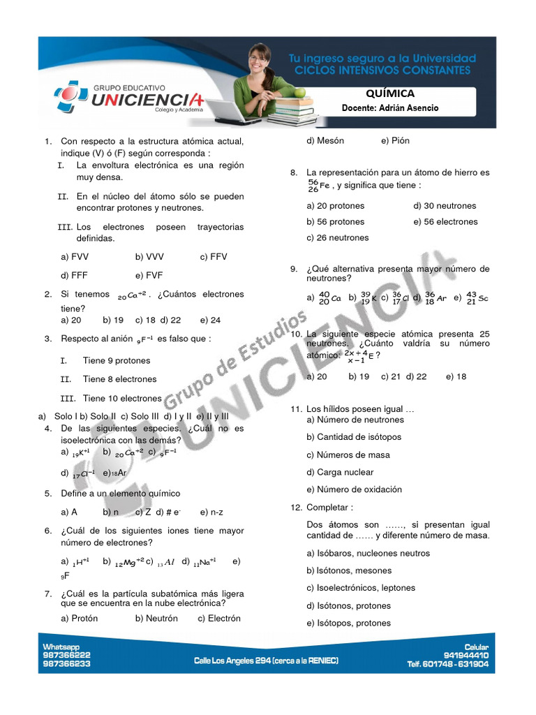1. Con respecto a la estructura atómica actual, d) Mesón e) Pión