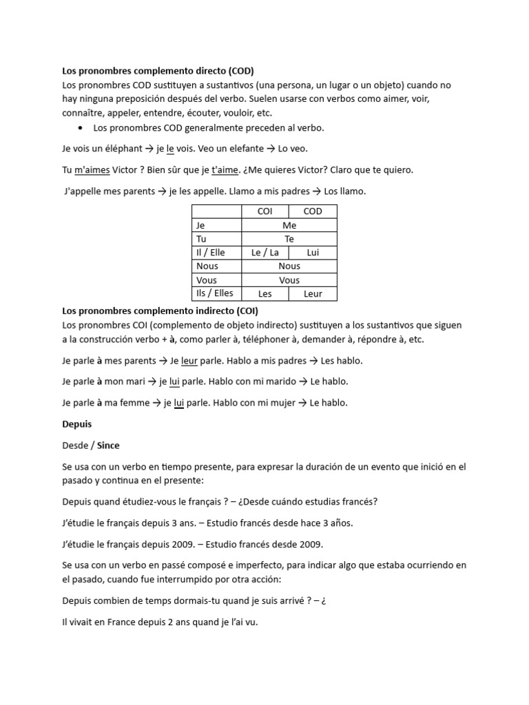 • Los pronombres COD generalmente preceden al verbo.