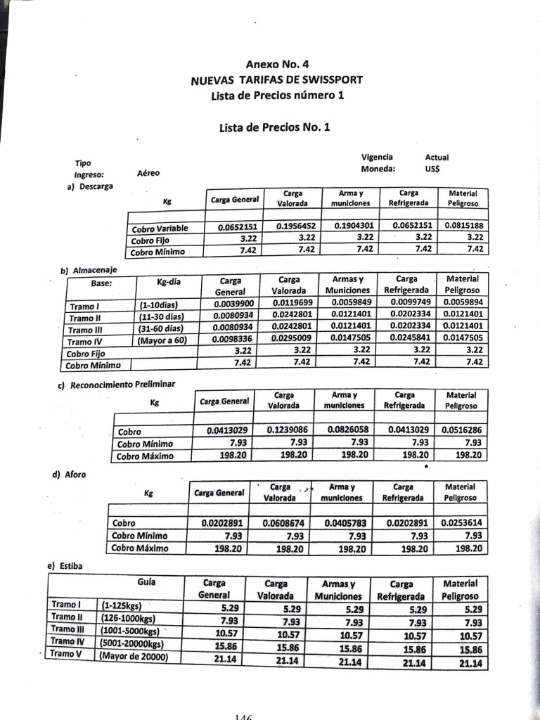 NUEVAS TARIFAS DE SWISSPORT