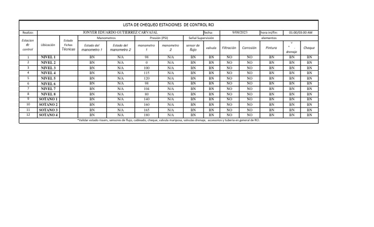 LISTA DE CHEQUEO ESTACIONES DE CONTROL RCI