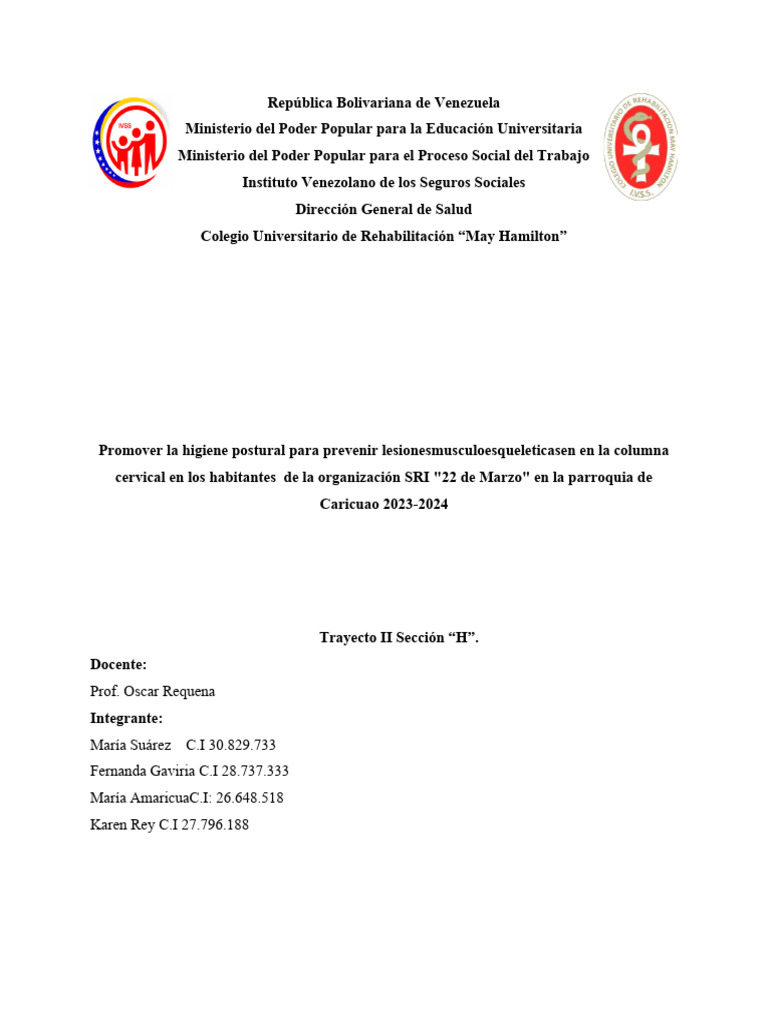 Proyectos de Investigación.,Trayecto II. Colegio Universitario de Rehabilitación"