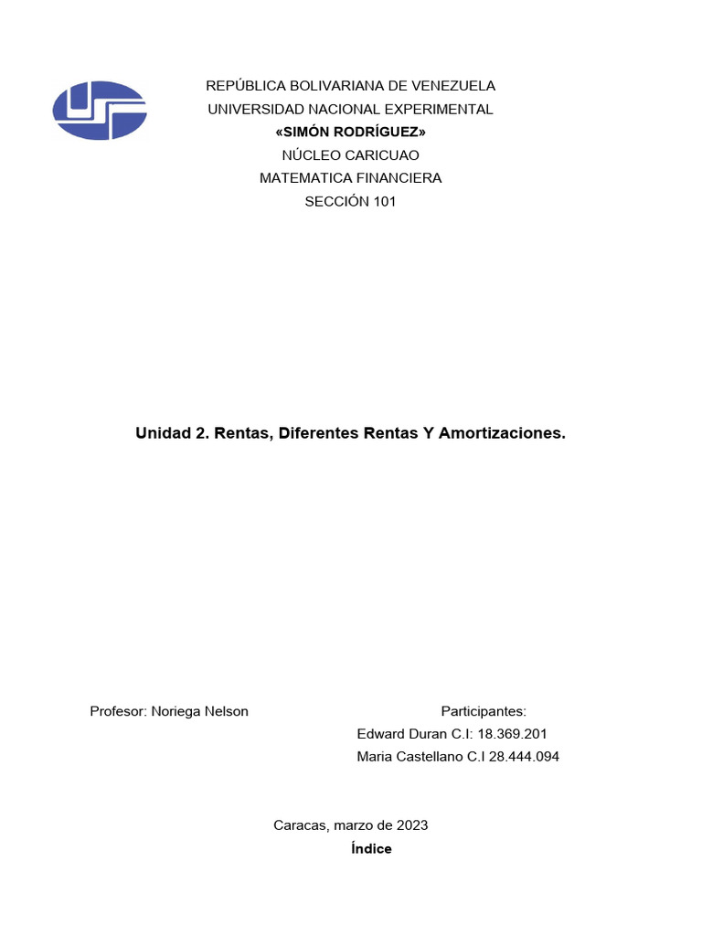 Unidad 2. Rentas, Diferentes Rentas Y Amortizaciones.