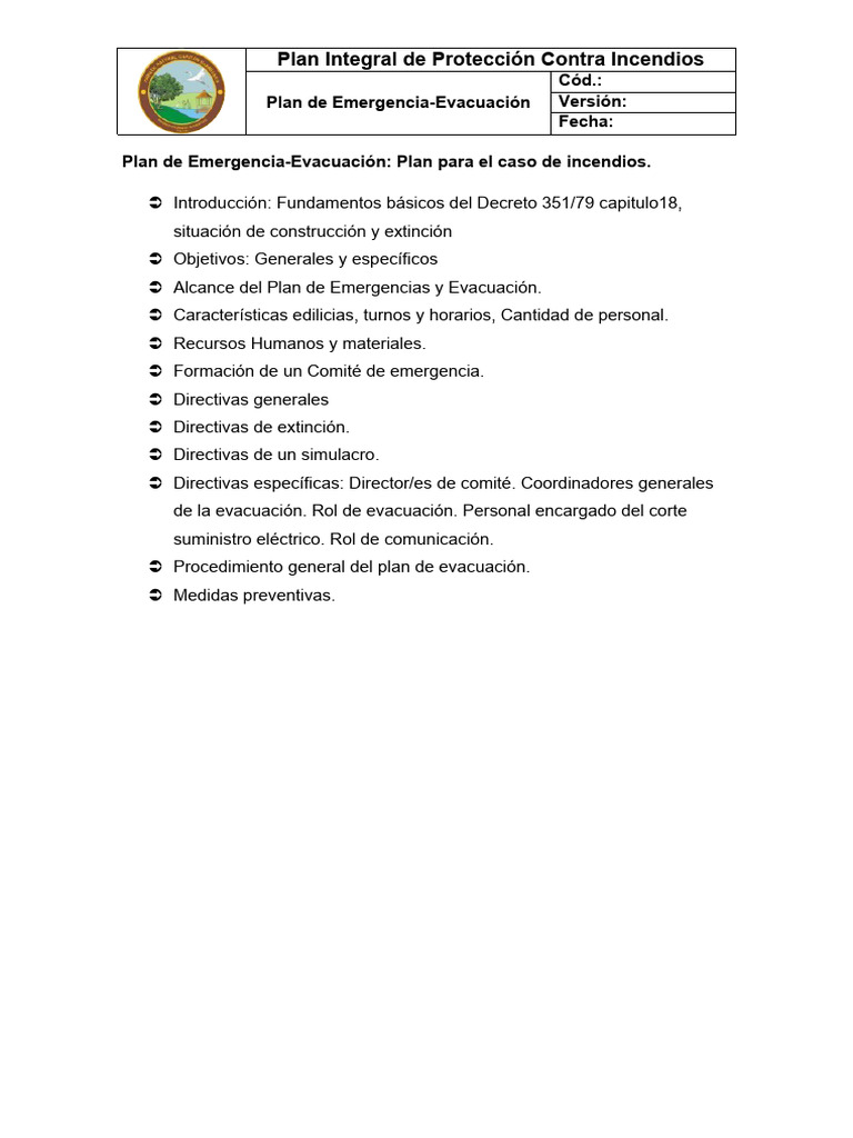 Plan de Emergencia-Evacuación: Plan para el caso de incendios.
