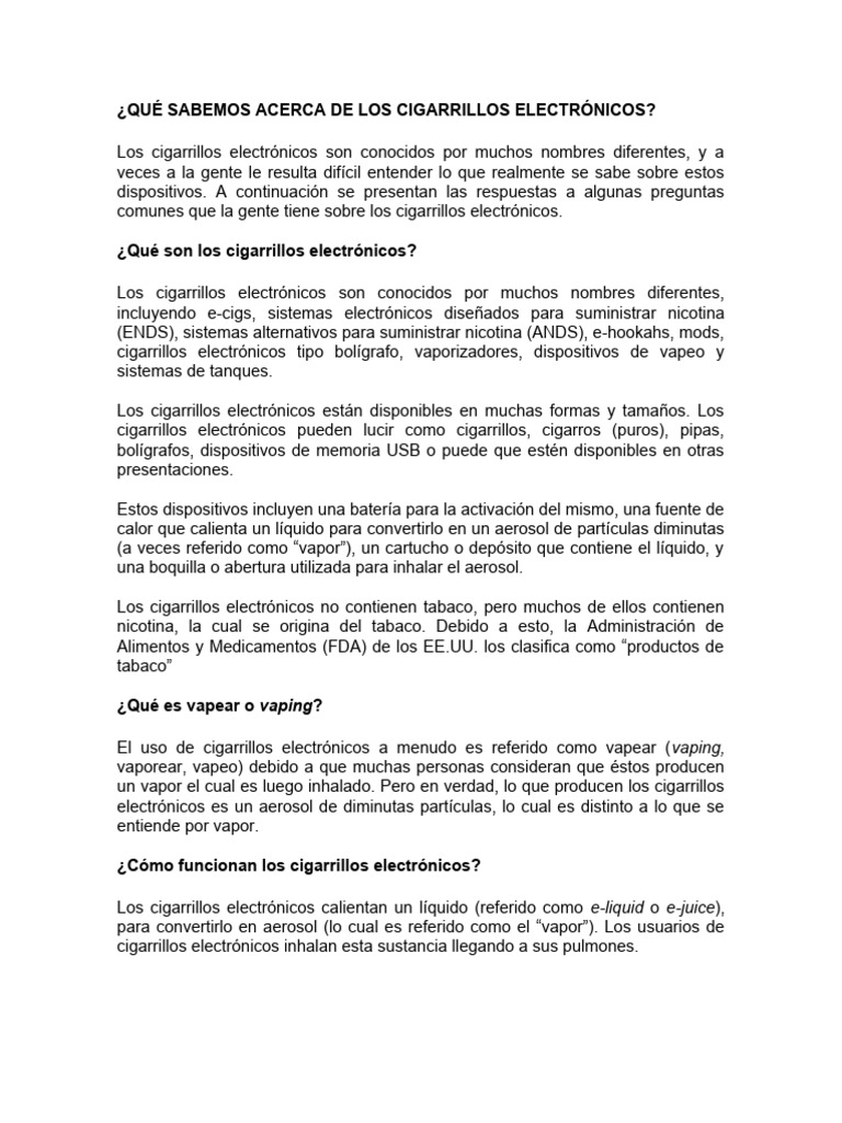 [“vapor”] de un cigarrillo electrónico?” y “¿Contienen nicotina los cigarrillos