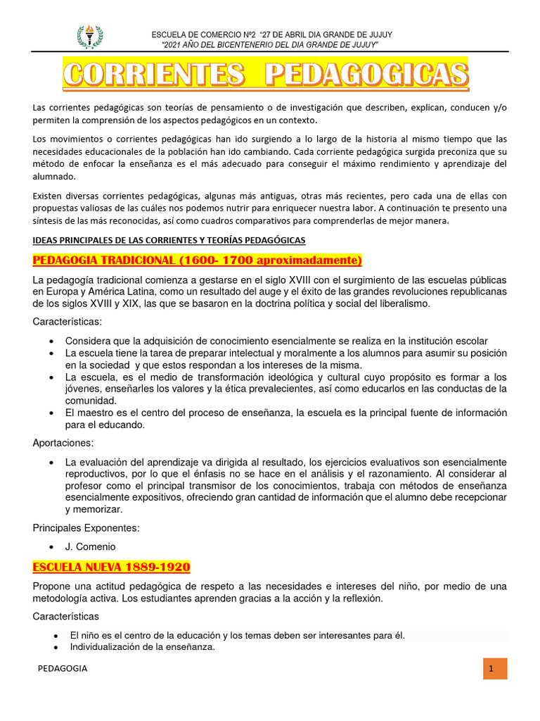 IDEAS PRINCIPALES DE LAS CORRIENTES Y TEORÍAS PEDAGÓGICAS