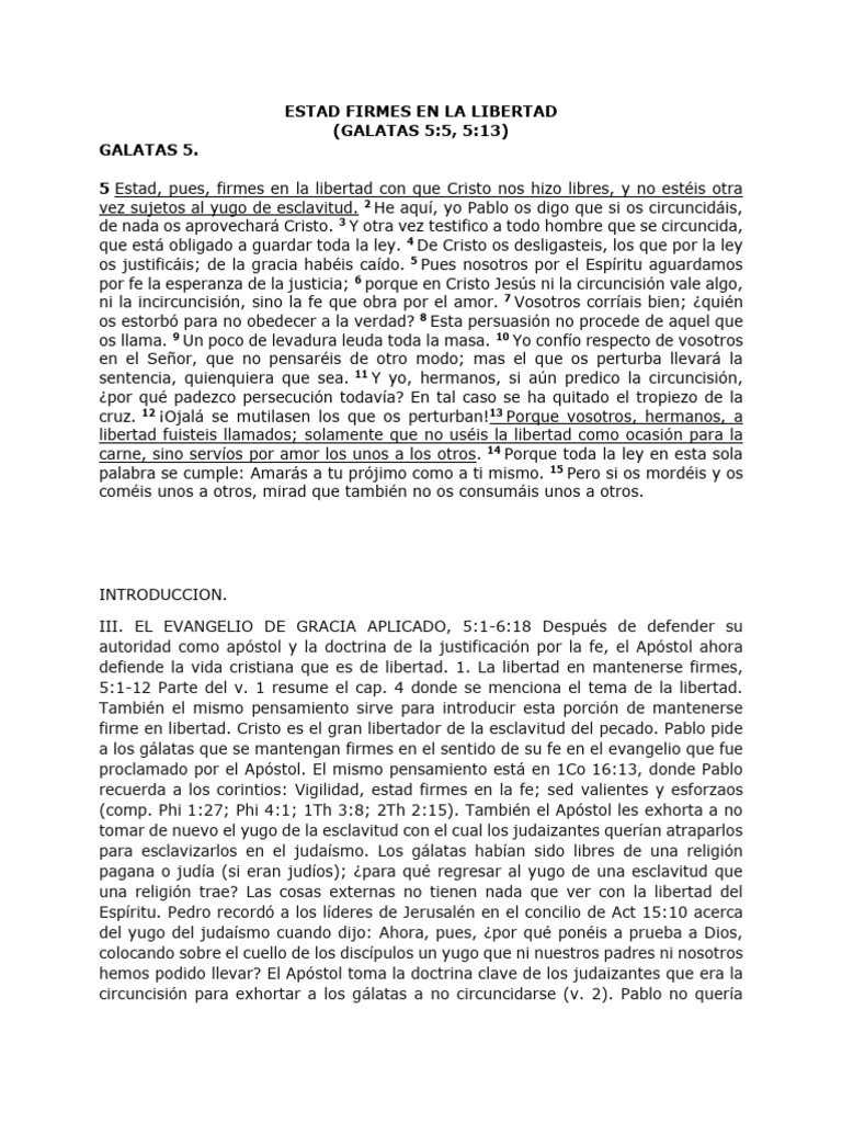 5:1-12 Parte del v. 1 resume el cap. 4 donde se menciona el tema de la libertad.