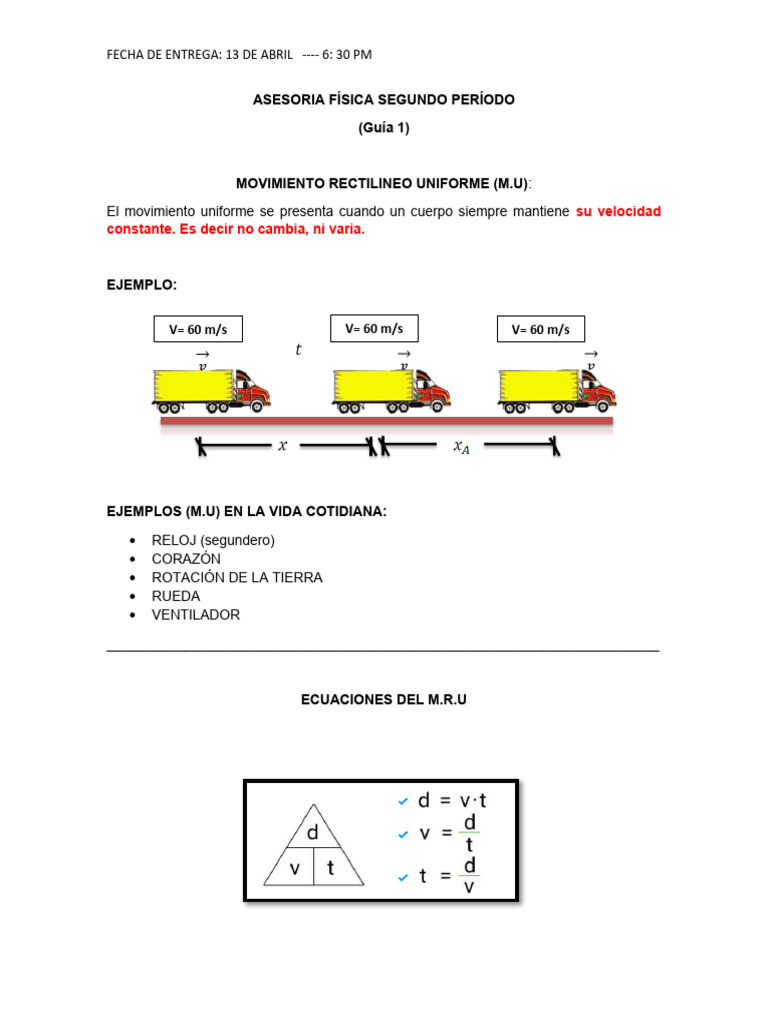 MOVIMIENTO RECTILINEO UNIFORME (M.U):