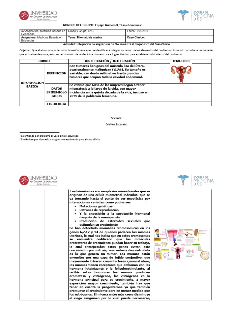 Asignatura: Medicina Basada en Tema: Miomatosis uterina Caso Clínico:
