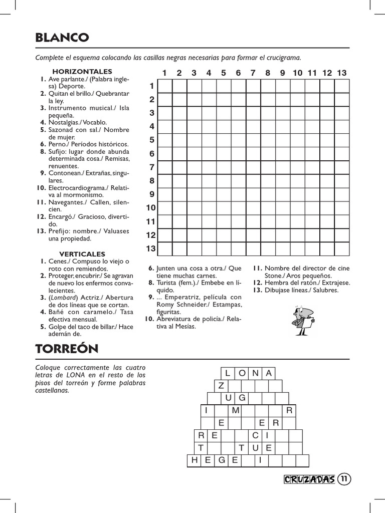 Rastree las palabras definidas partiendo de cada casilla con la correspondiente definición y llevando siempre