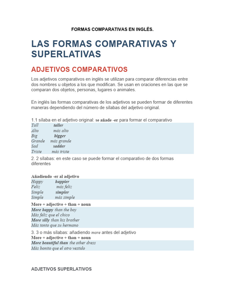 En inglés las formas comparativas de los adjetivos se pueden formar de diferentes