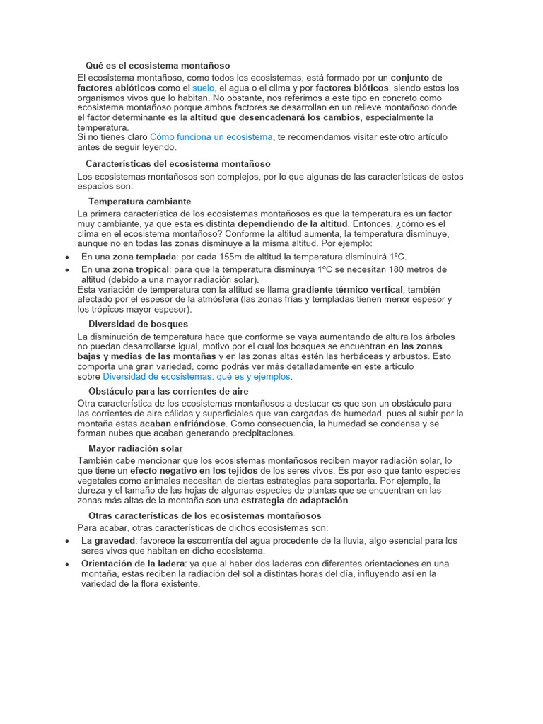 Características del ecosistema montañoso