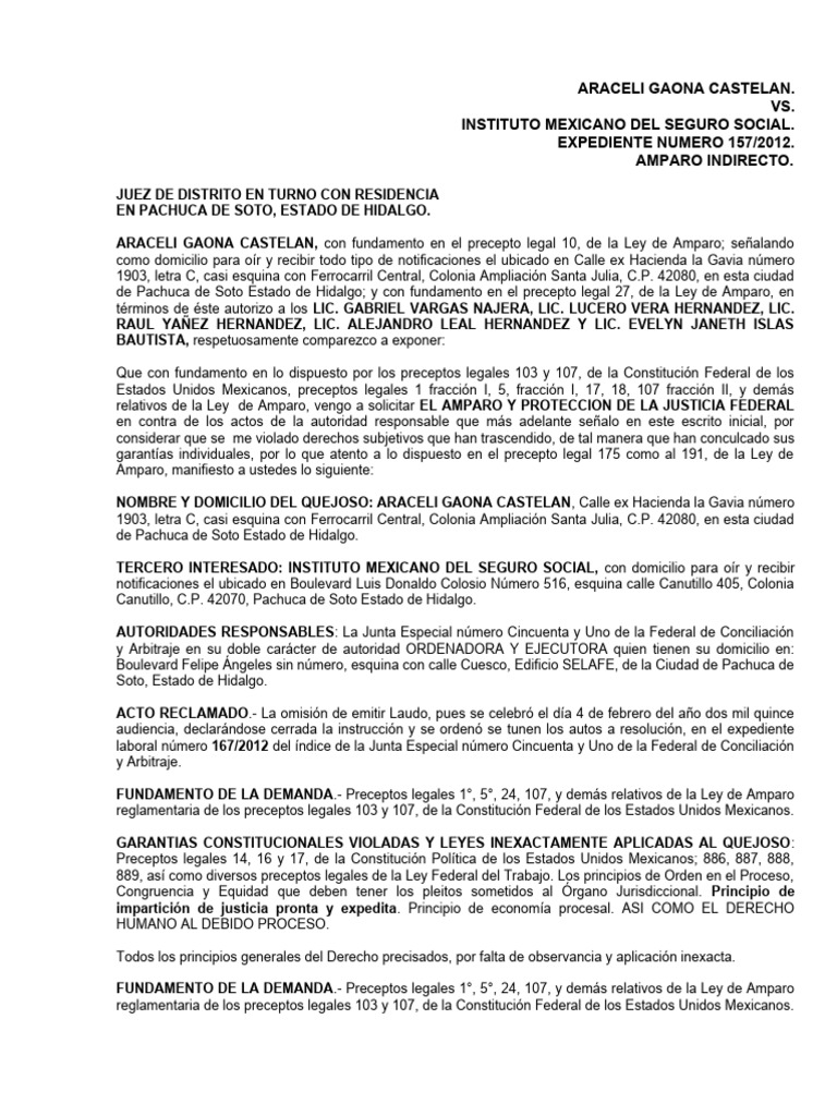 relativos de la Ley de Amparo, vengo a solicitar EL AMPARO Y PROTECCION DE LA JUSTICIA FEDERAL