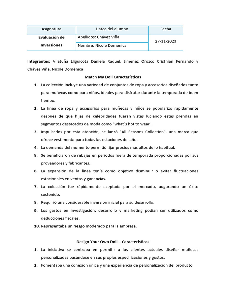 1. El análisis financiero muestra que Match My Doll (MMD) resulta más beneficioso
