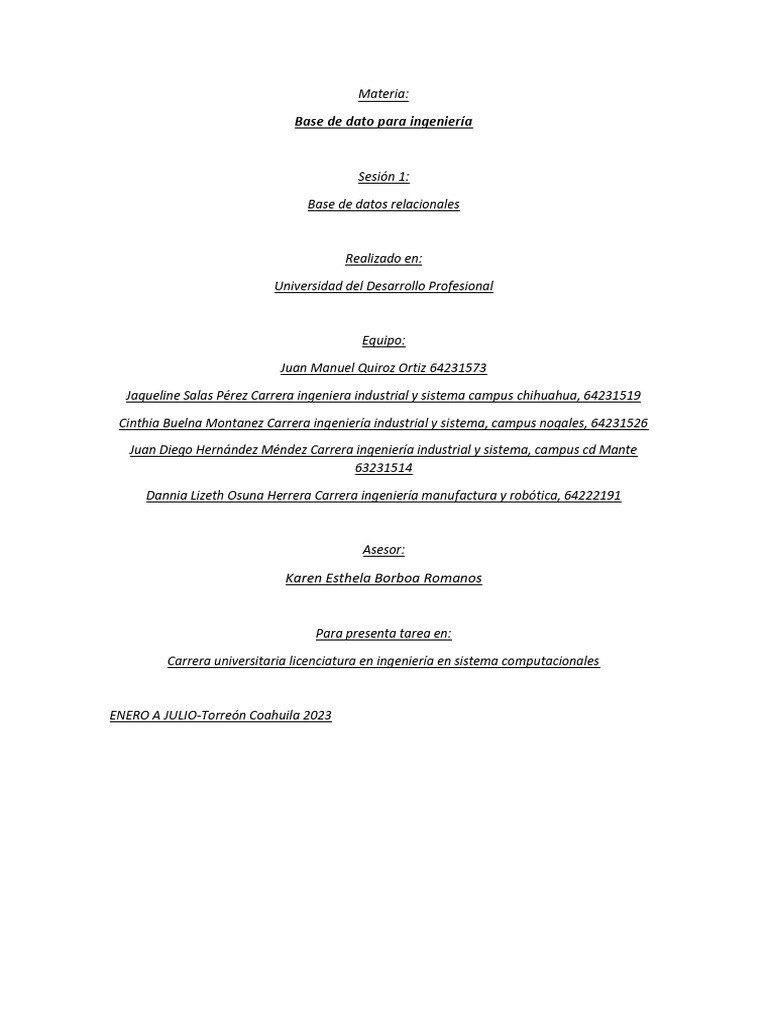 Base de dato para ingeniería