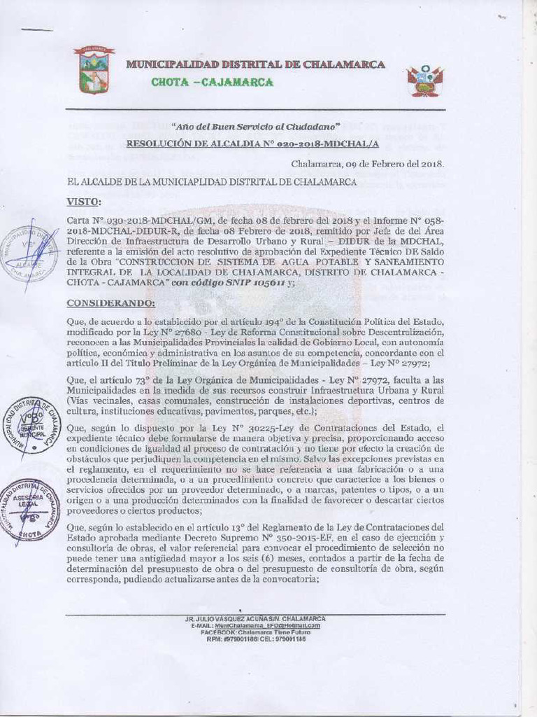 2011/MDCHAL/A, entre la iipalidad ‘Distal de Chalamarca y el CONSORCIO