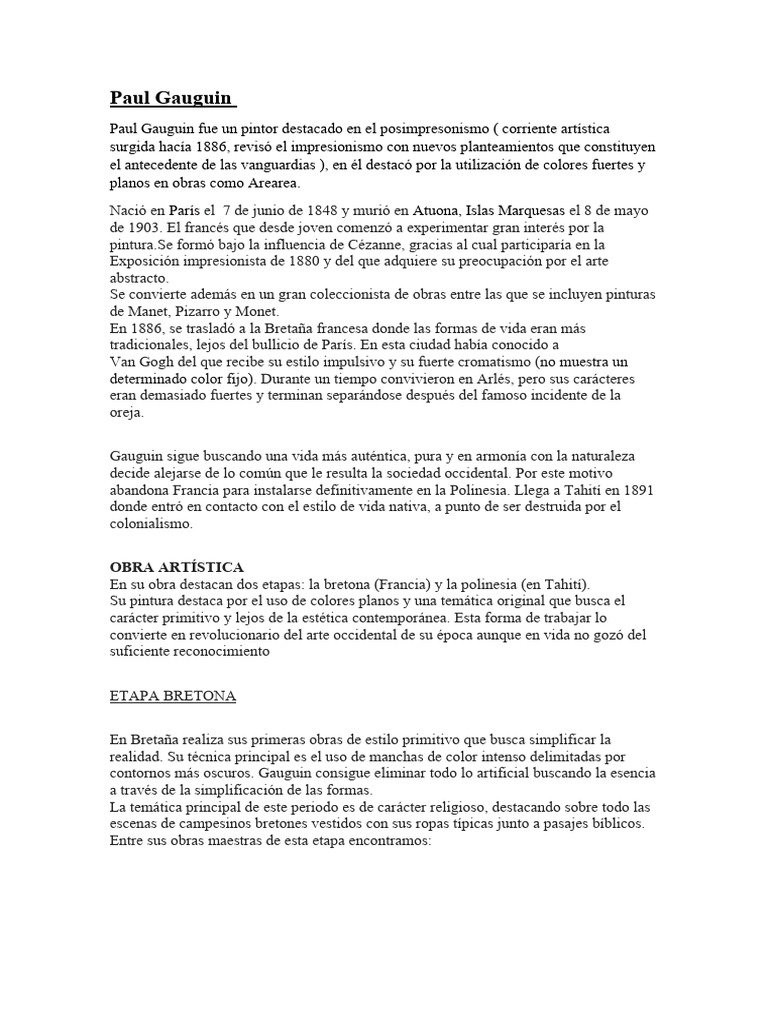 Paul Gauguin fue un pintor destacado en el posimpresonismo ( corriente artística