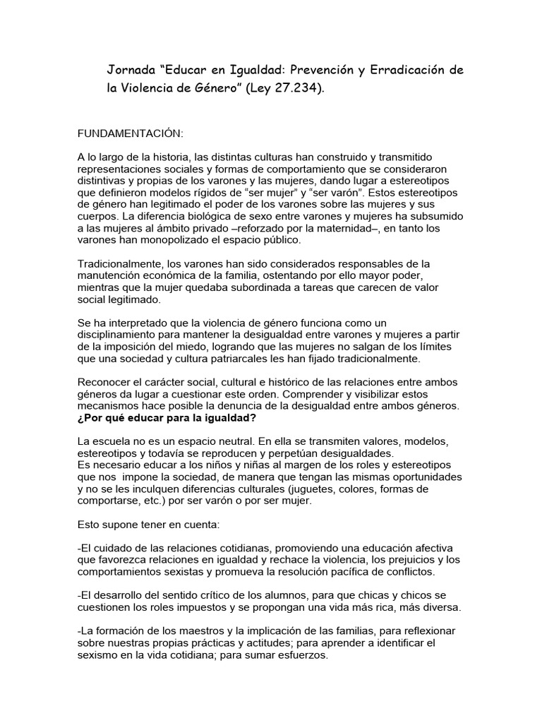 que favorezca relaciones en igualdad y rechace la violencia, los prejuicios y los