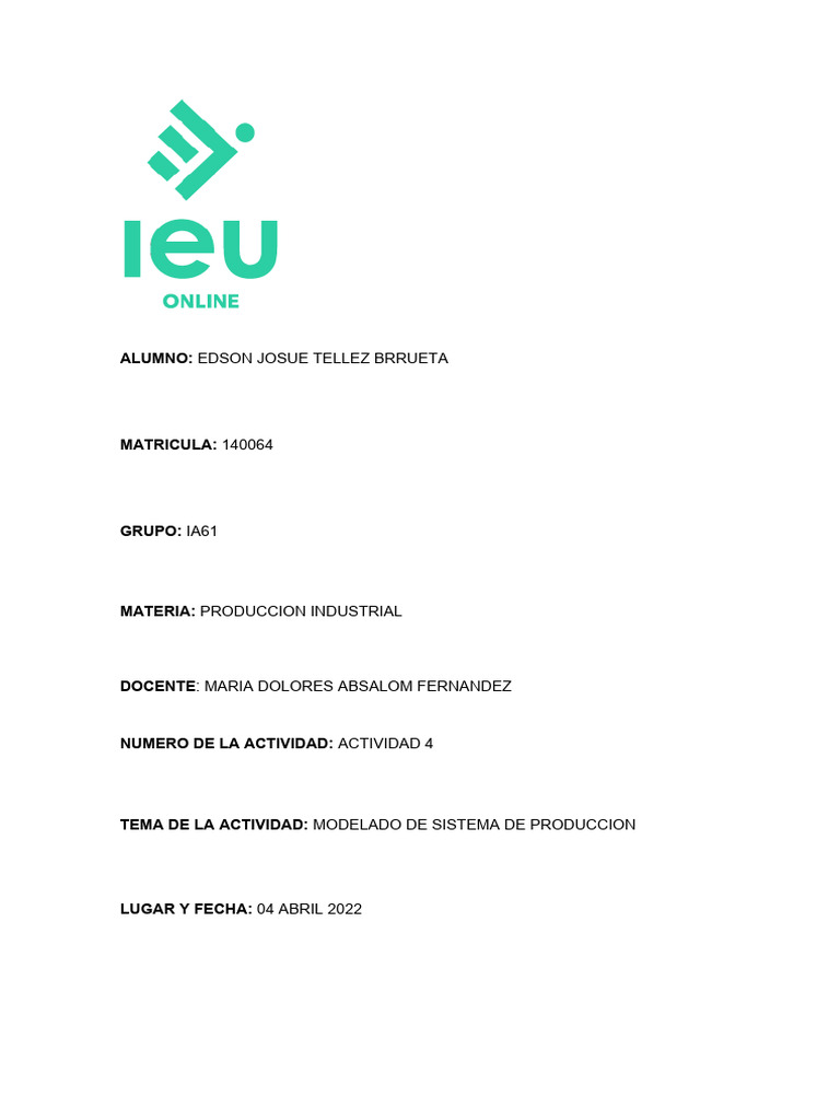 TEMA DE LA ACTIVIDAD: MODELADO DE SISTEMA DE PRODUCCION