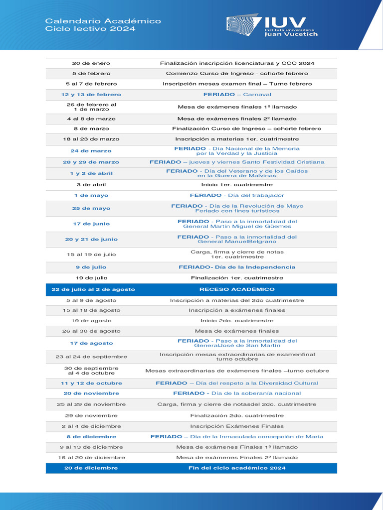 5 al 9 de agosto Inscripción a materias del 2do cuatrimestre