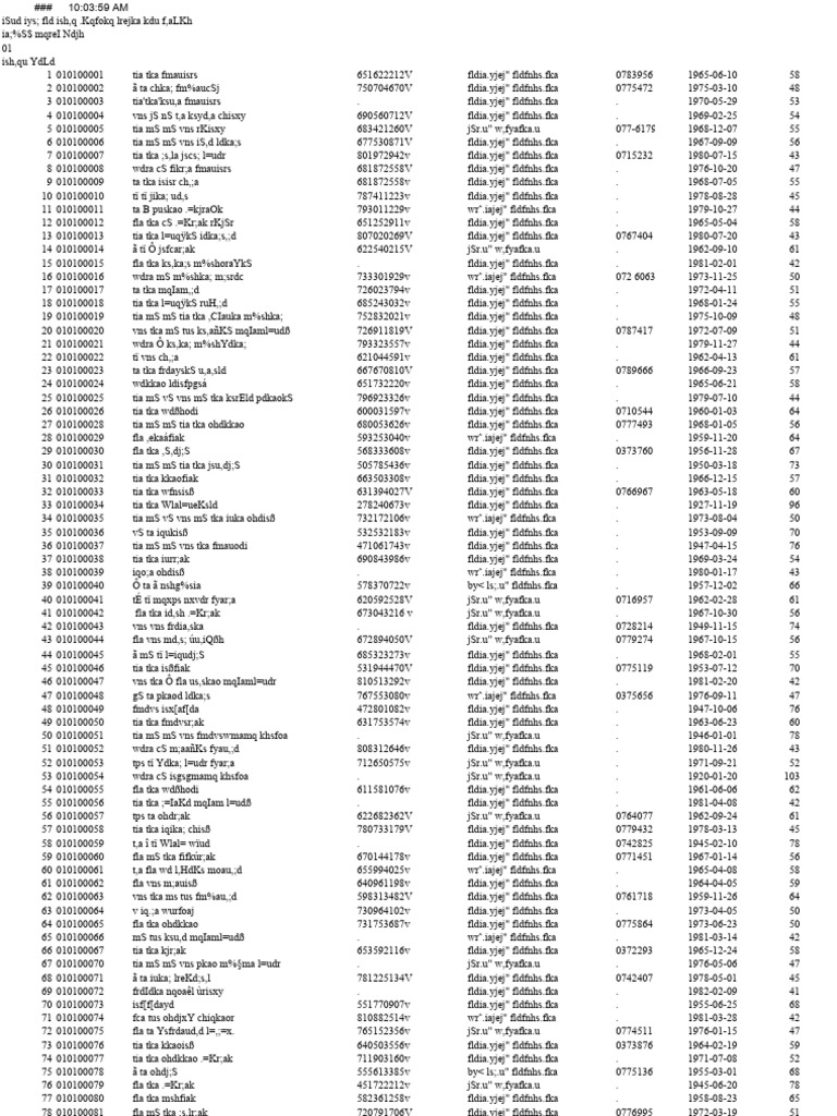 93 010100096 vns tus iS;d mqIamrdkS jkisxy 745422217v by< ls;.u" fldfnhs.fka 0769702 1974-02-11 49