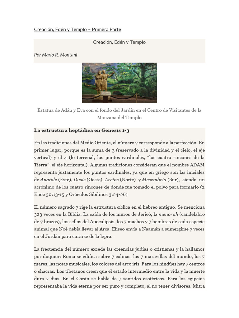 “Argumentaré que el Jardín de Edén fue el primer templo arquetípico, y que fue