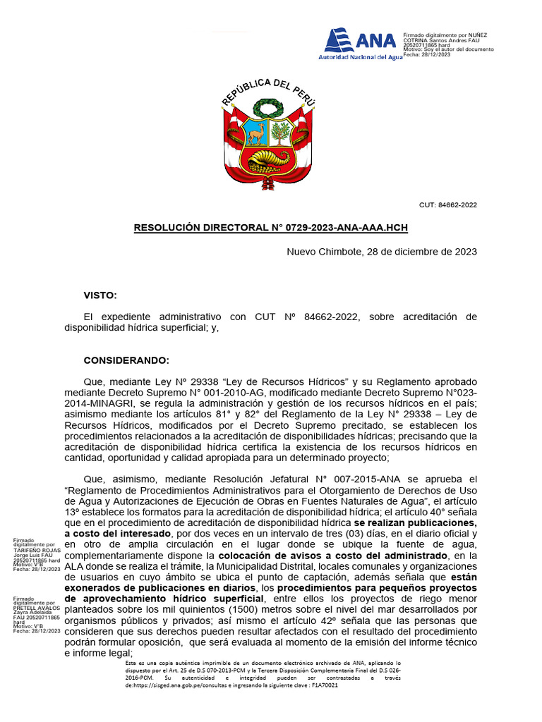 RESOLUCIÓN DIRECTORAL N° 0729-2023-ANA-AAA.HCH